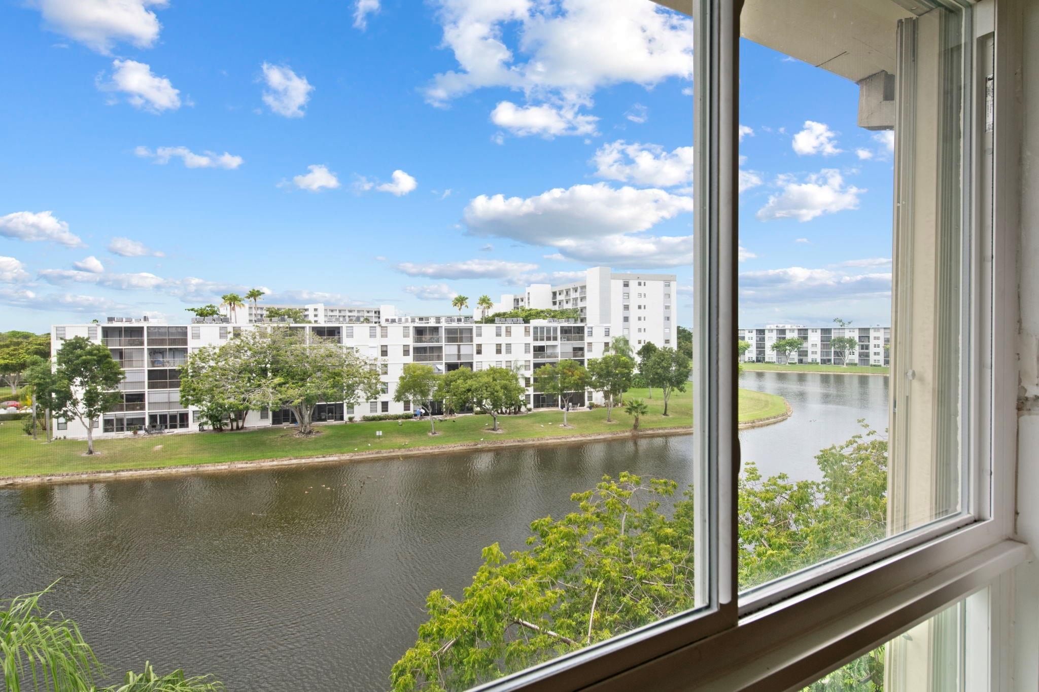 Top floor 2-bedroom, 2-bath corner unit with serene lake views. This condo features hurricane impact windows and an in-unit washer and dryer, it's move-in ready or easy to update to your taste. Enjoy the peaceful lake views from the living room and primary bedrooma??offering a calming and relaxing ambiance. This low HOA community is packed with desirable amenities, including two swimming pools, three tennis courts, a playground, clubhouse, and a fitness center. Perfectly situated close to the casino, shopping, dining, and entertainment options. Easy access to major highways and only a few miles from the beach, this gem offers both lifestyle and location.