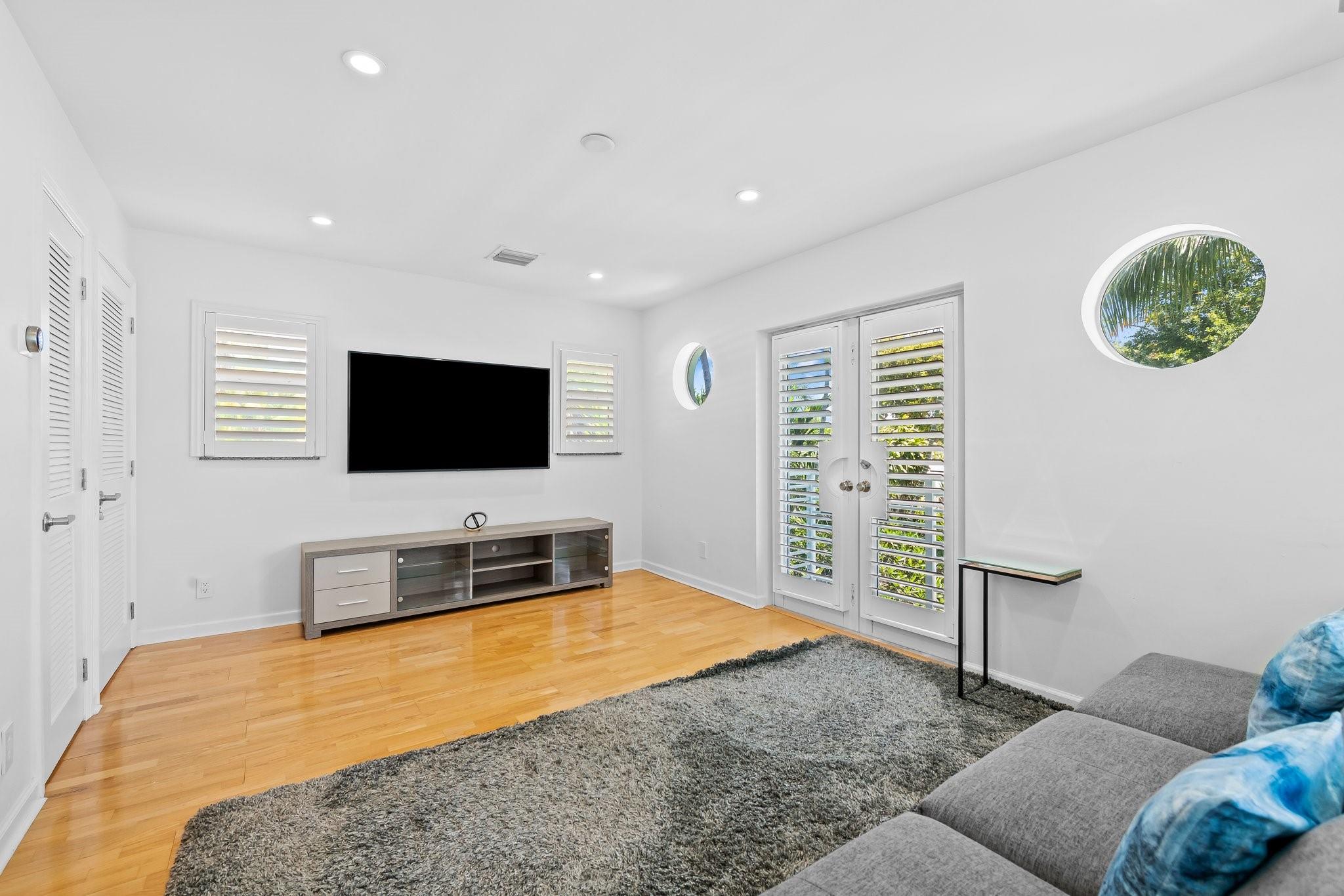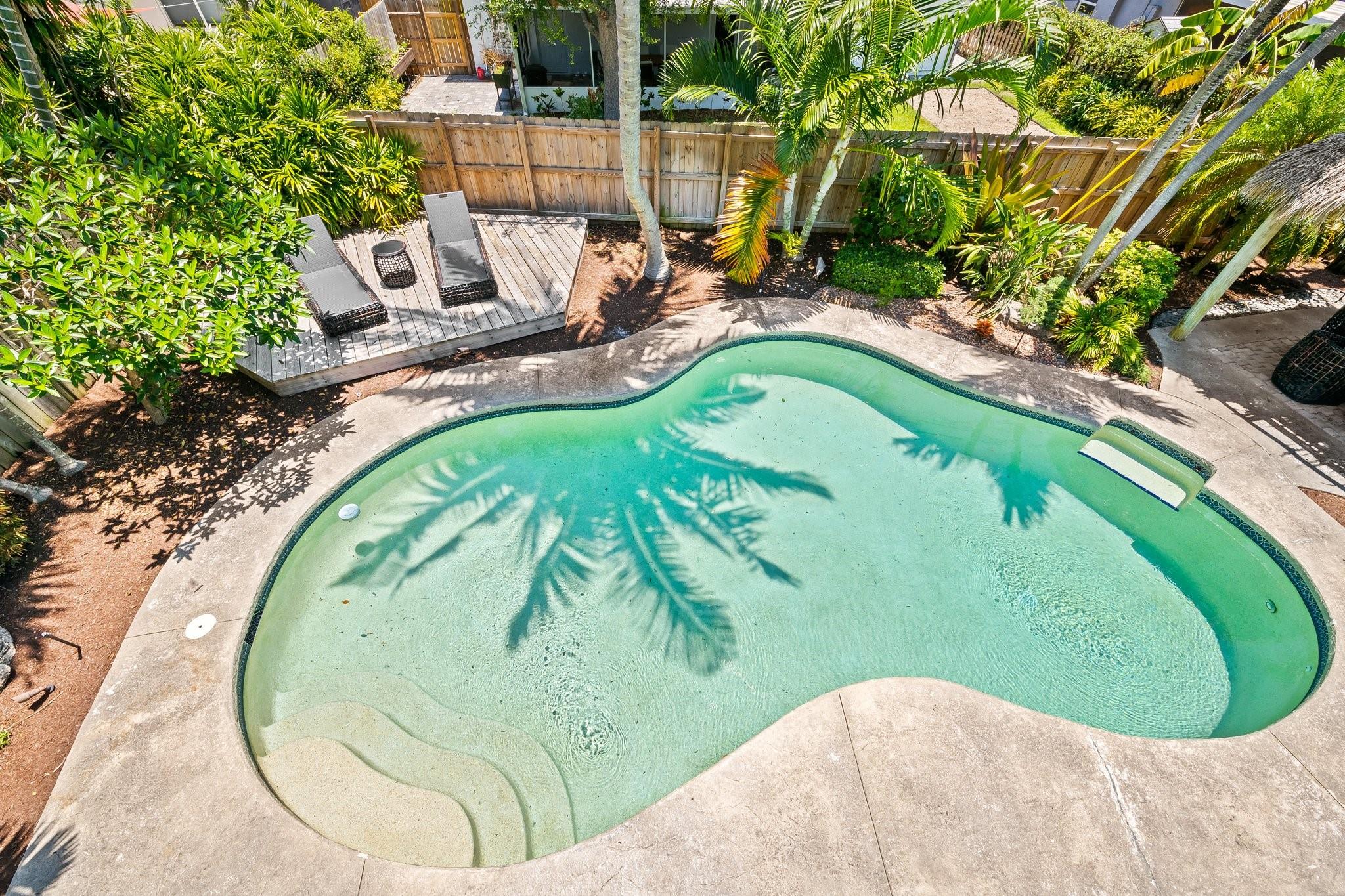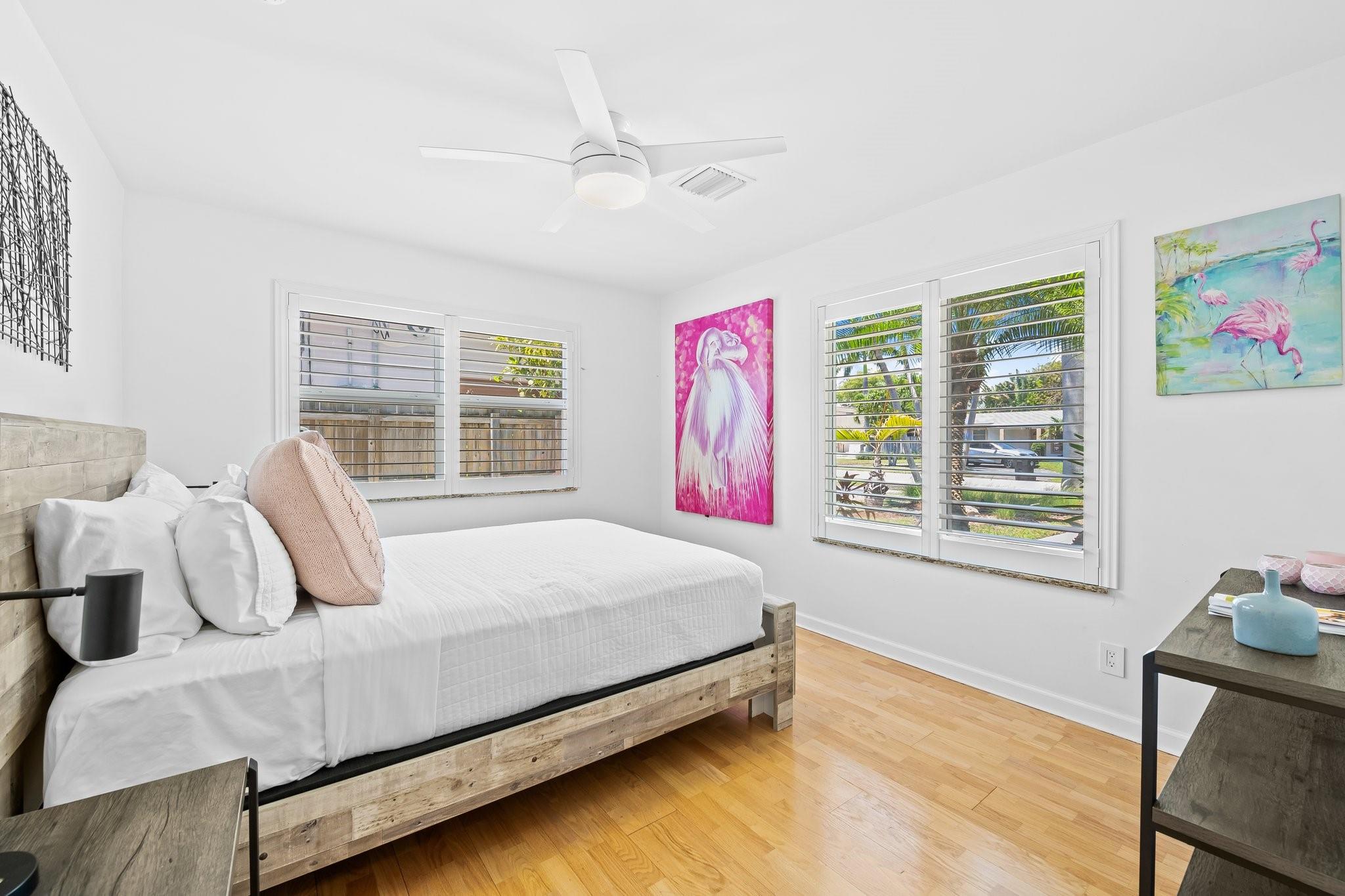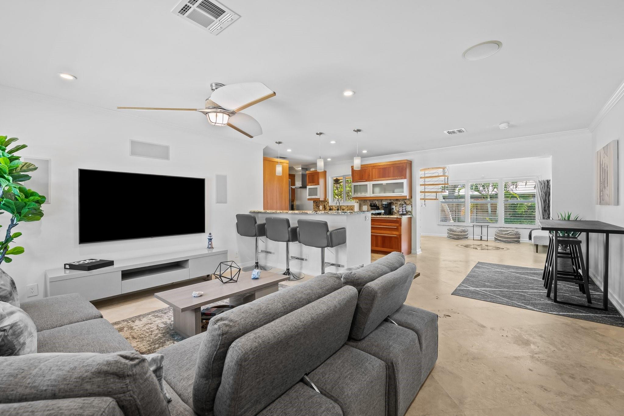 Nestled in the heart of Lighthouse Point, this residence blends modern elegance with tropical coastal living. Inside, you'll find a welcoming ambiance with a thoughtfully designed kitchen and living area, high ceilings, and hurricane impact windows and doors throughout. The first floor includes the primary suite and a guest bedroom, while upstairs offers a cozy den and an additional guest room & full bath. Fully renovated in 2008, this home features an aluminum metal roof and updated PVC plumbing. The backyard is an entertainer's dream, complete with a pool, a generously sized covered patio with a bar, and a Tiki Hut--this is the perfect setting for entertaining guests or relaxing by the pool. Walk to Publix, Whole Foods & restaurants. The beach is just a short golf cart or bike ride away!